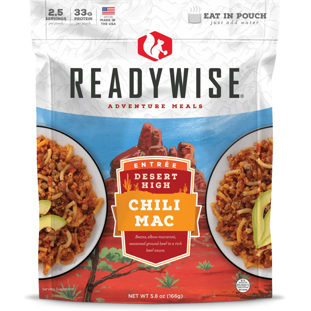 Each pouch of our Desert High Chili Mac contains 2.5 servings and is resealable. These pouches are lightweight making them easily portable on any outdoor adventure. Just add water and you can eat directly from the pouch.
