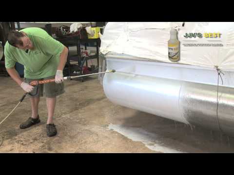 Using a NEW Hudson Sprayer or Garden Sprayer, DO NOT MIX WITH OTHER CLEANERS this will neutralize the product. For use on bare only. Not to be used on painted aluminum. Working from BOTTOM to TOP spray the pontoon tubes. Do one tube at a time. Allow to dwell on the bare aluminum 5 to 10 minutes. Keeping all surfaces wet. Rinse well with a high pressure washer, from TOP of tube to the bottom. Please note that heavily soiled areas may require repeating.