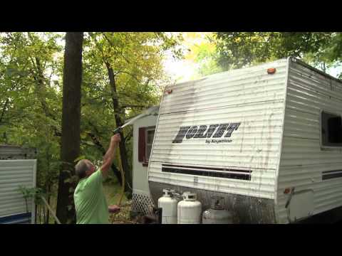 They have discovered that very little scrubbing (manual labour) is required when this product is nice and sudsy so make sure to have a soft cleaning brush when using it. They just spray it on and give it a little scrub with the brush and pressure wash it off and voila - back to new!