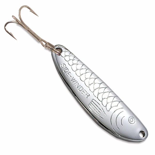 Experienced ice anglers know that vertical jigging with Acme spoons is one of the most effective ways to target trophy fish under the ice. When jigged with quick, short lifts of the rod, the Sidewinder darts upwards and falls with a fluttering action that imitates an injured or scared shad, shiner or other baitfish. Longer, slower jigging strokes allow the sidewinder to have a unique rocking motion to trigger more stubborn fish. Fish this spoon with no-bait, or with a minnow head to add scent, either way, trophy fish can’t resist. Available in 1/8, 1/5, 1/3, 1/2 AND 3/4 oz sizes, the unique Sidewinder action will make this spoon a favorite of all ice fisherman.