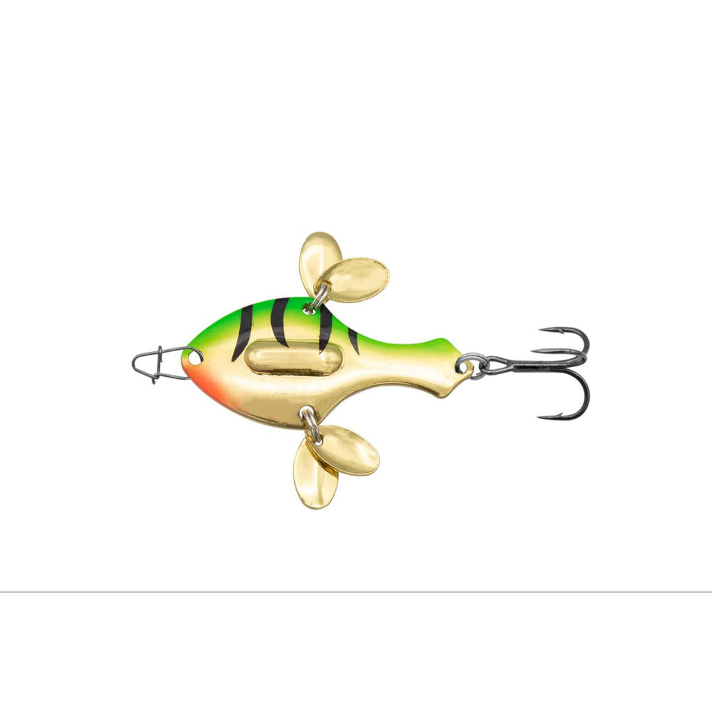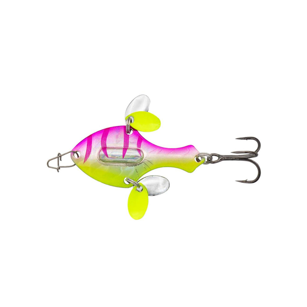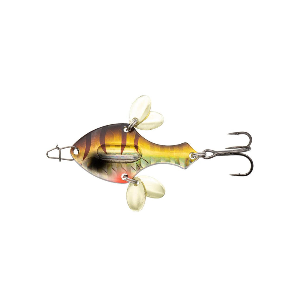 The internal rattle chamber is placed centrally so it doesn’t impact the fluttering action and offers a symetrical balance. The micro blades, on top of their visual effect, generate an additional sound attraction. The blades are designed to complement the overall color patterns of the individual spoons, while maintaining some contrast from the spoon itself.