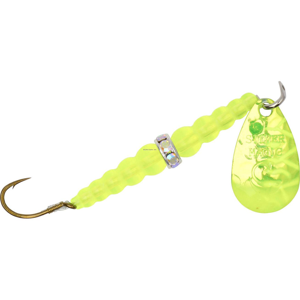 Worden's® Silver Magic is a jeweled kokanee and trout spinner. It features a pre-snelled (line attached) spinner design and is designed for tipping. The Silver Magic's hammered blade creates added vibration.